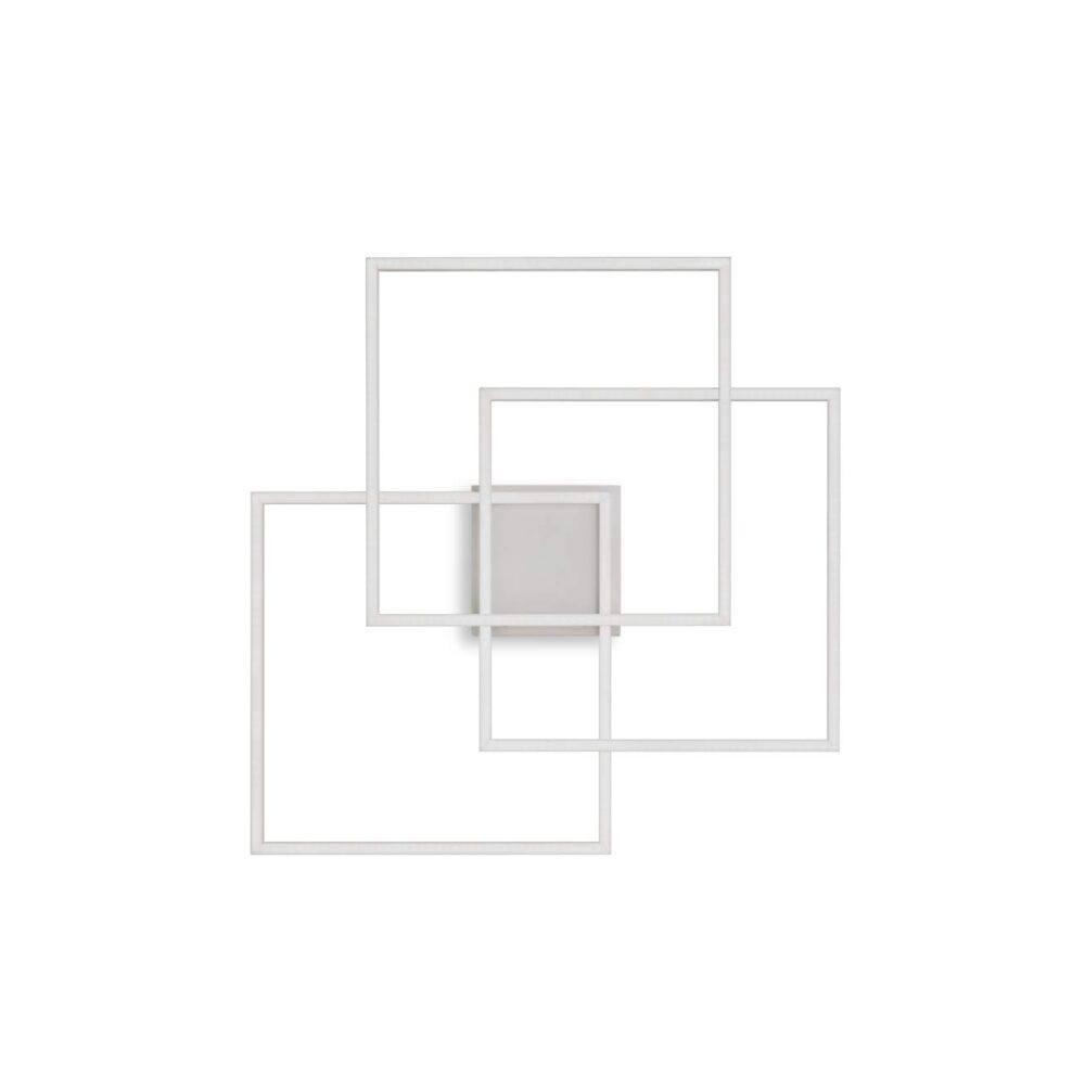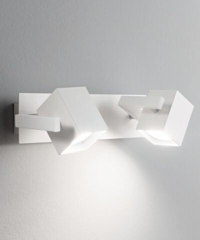 Lampada a soffitto, base e montatura in metallo verniciato bianco opaco. Diffusori in materiale plastico colore opale.