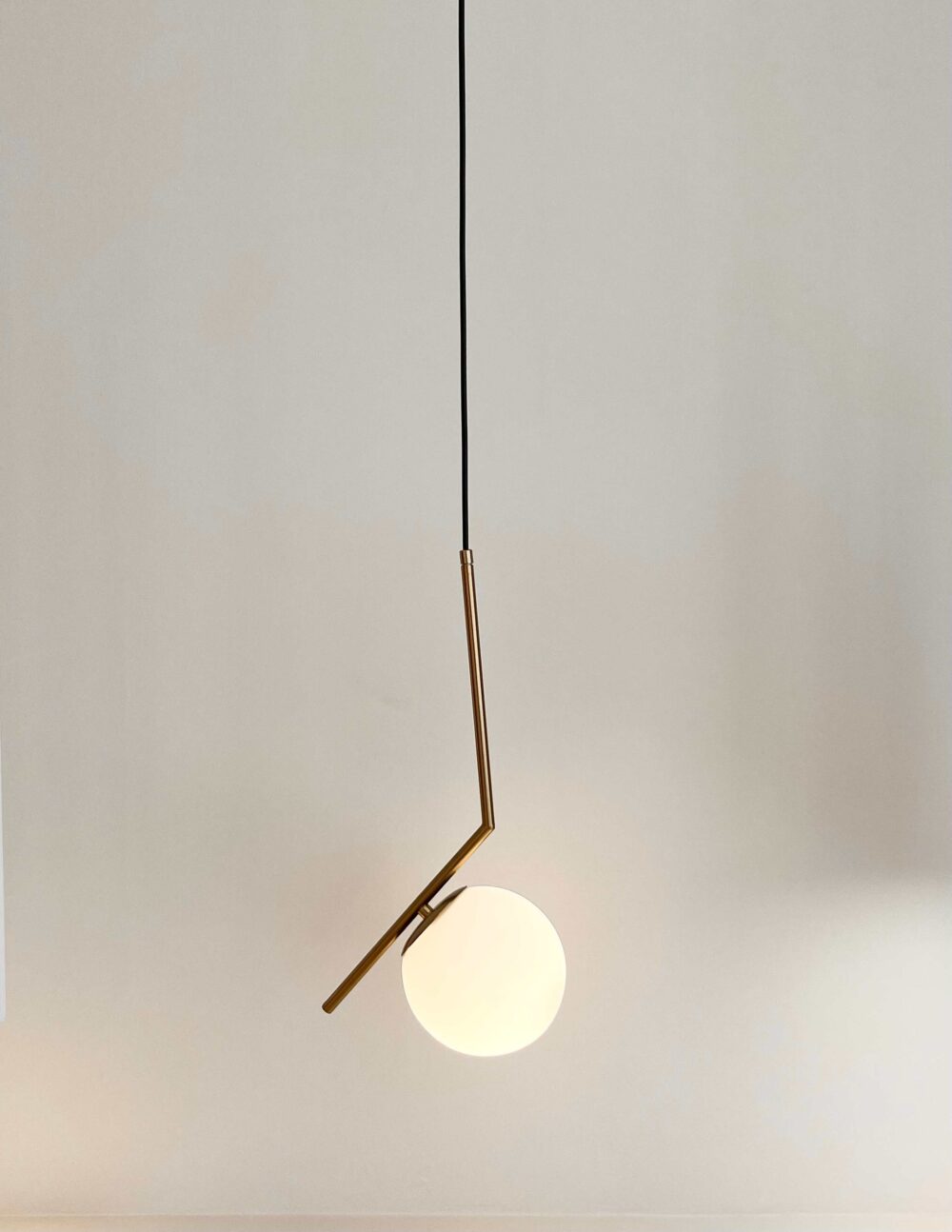 Colore: Metallo in ottone satinato e sfera in vetro soffiato bianco